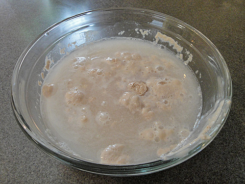 Here’s a batch of yeast I’ve proofed. You can see the bubbles so you know it’s good to go.