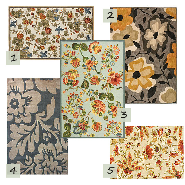 A little while ago I showed off my top 5 favorite patterned rugs. If you’re more of a floral lover, you’ll love today’s top 5 floral rugs. Some are more traditional while others have a more contemporary flair.