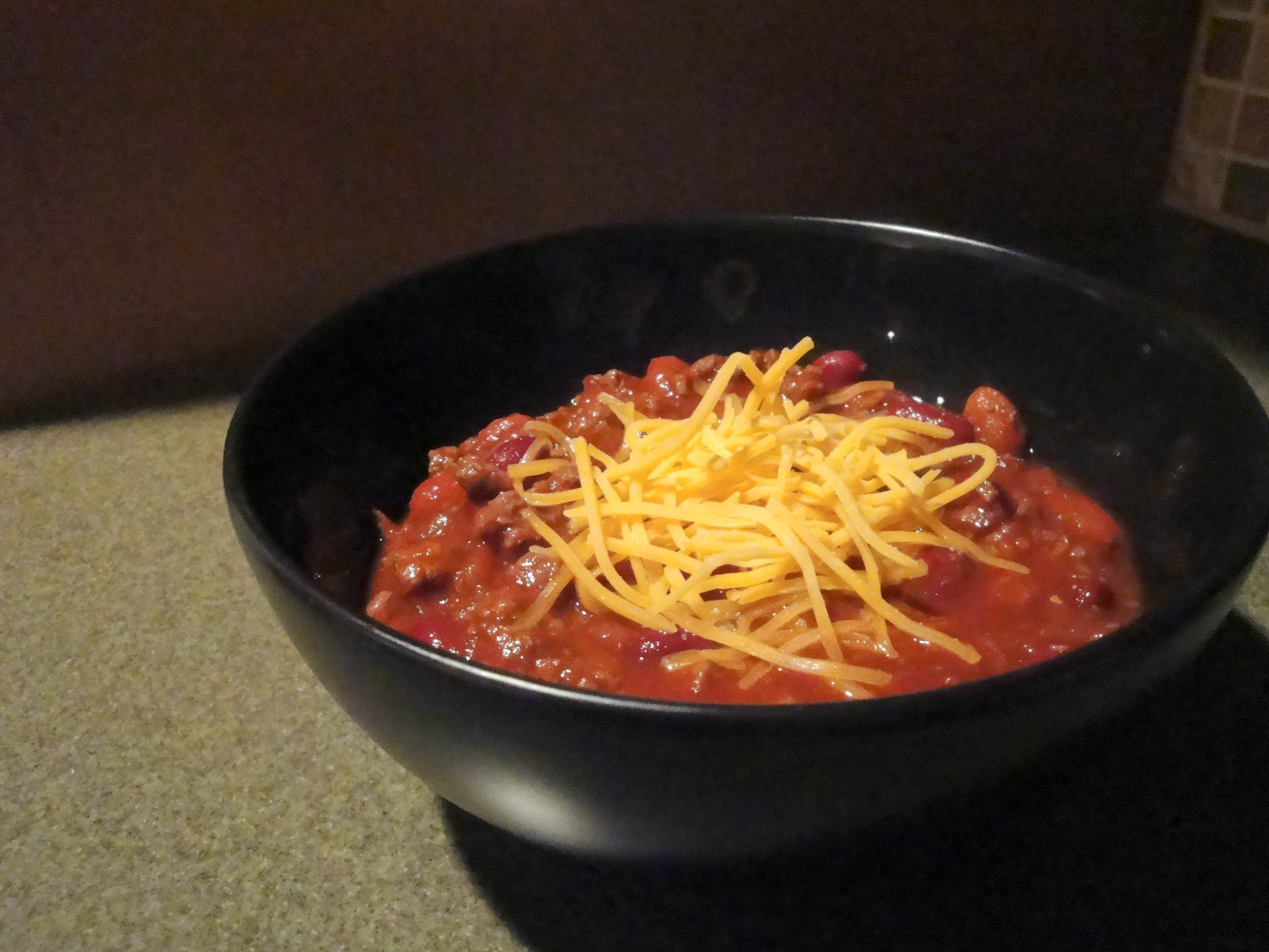A wonderful chili meal for a cold day. Adapted from Food.com.